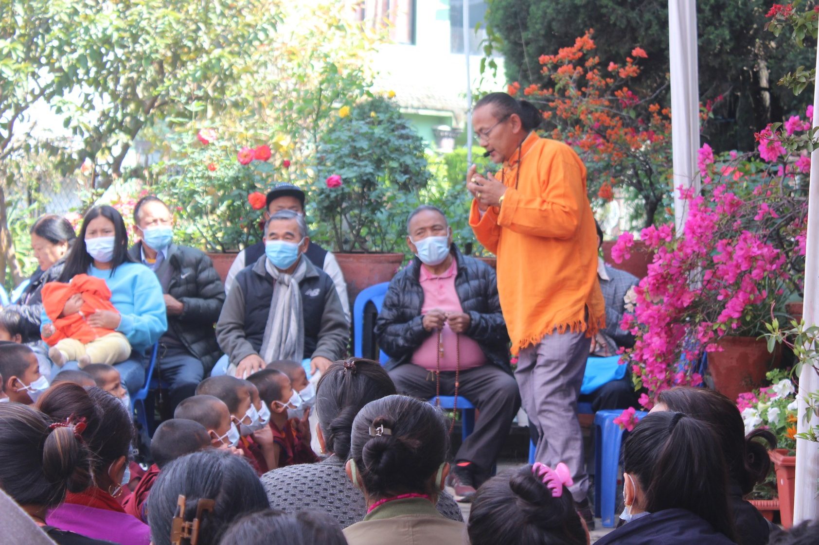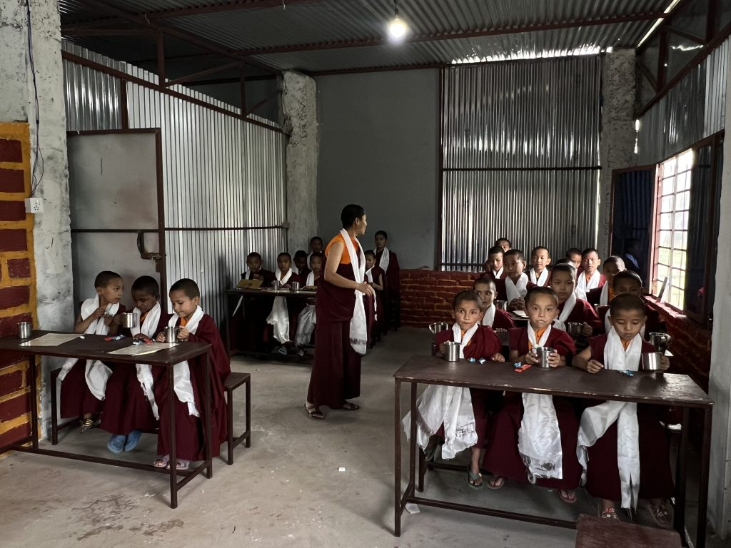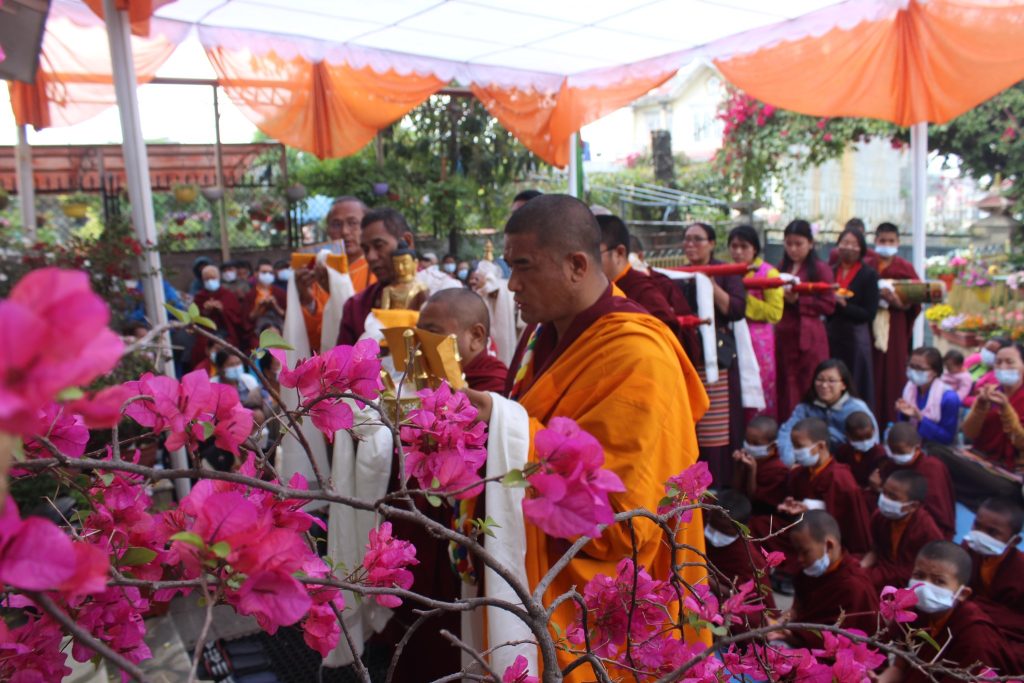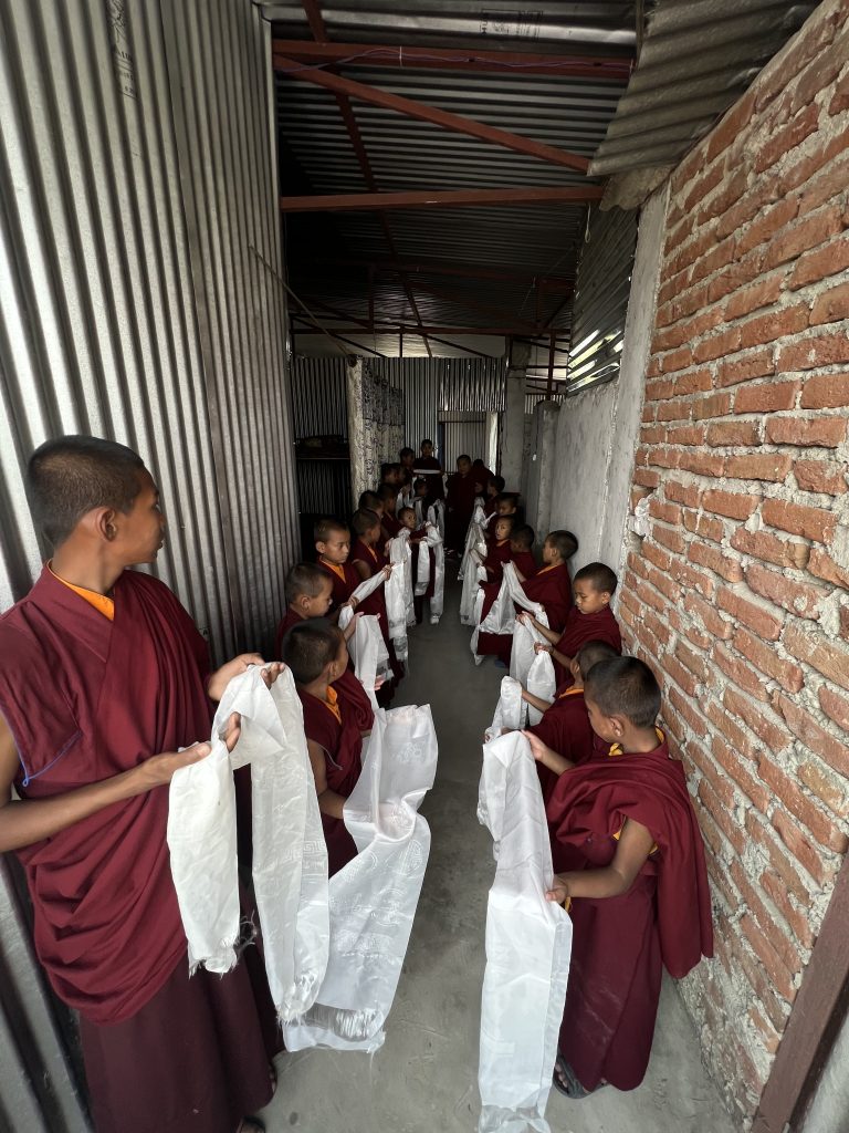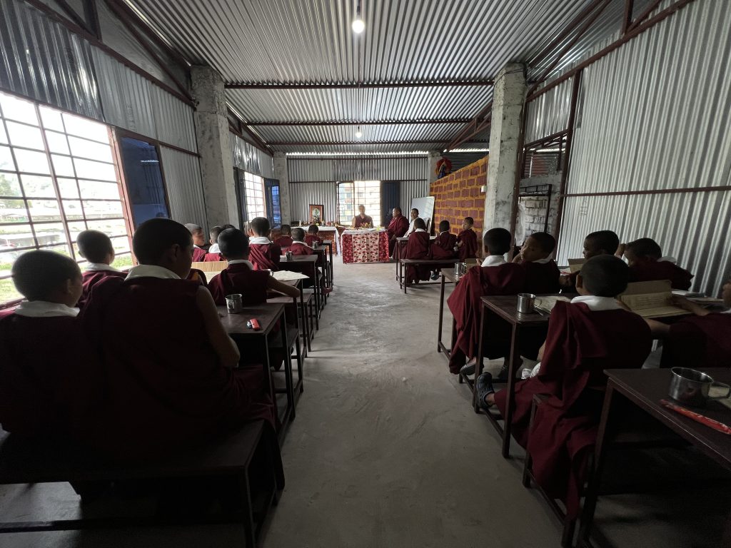 Monks getting ready for Khenpo Pema Choephel to start the inauguration for their new classroom