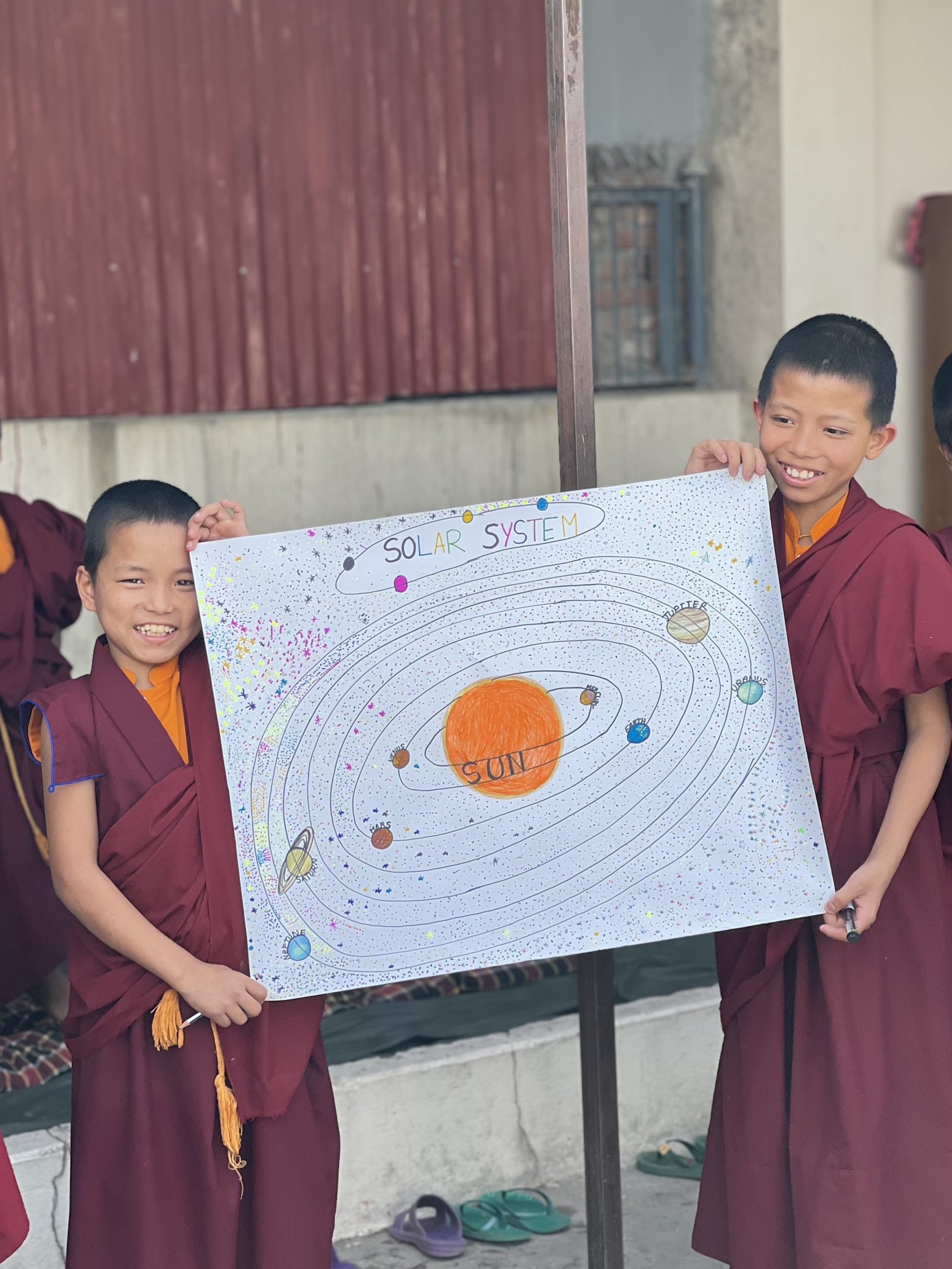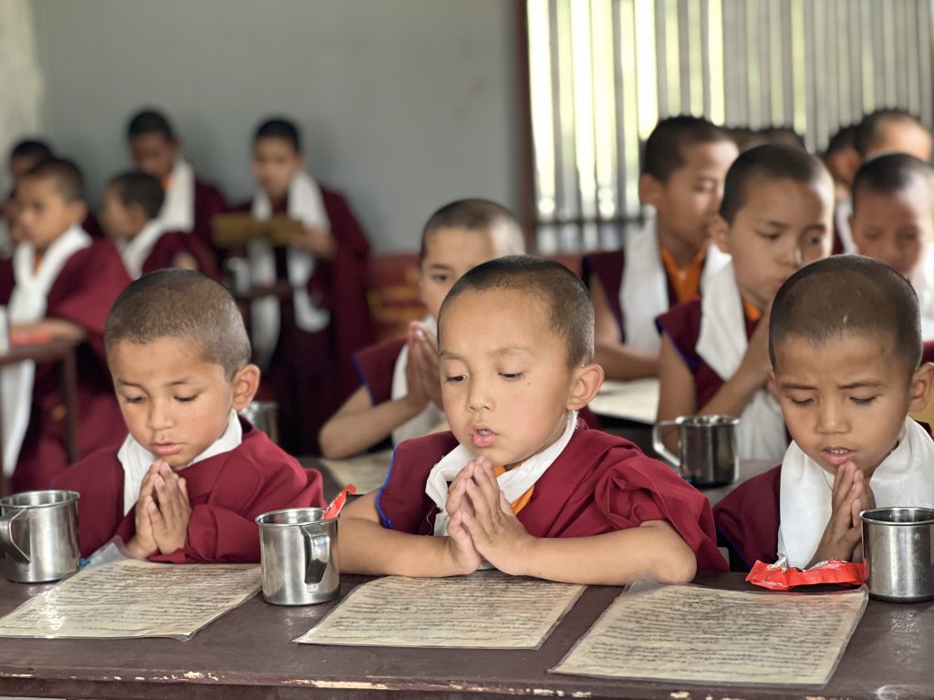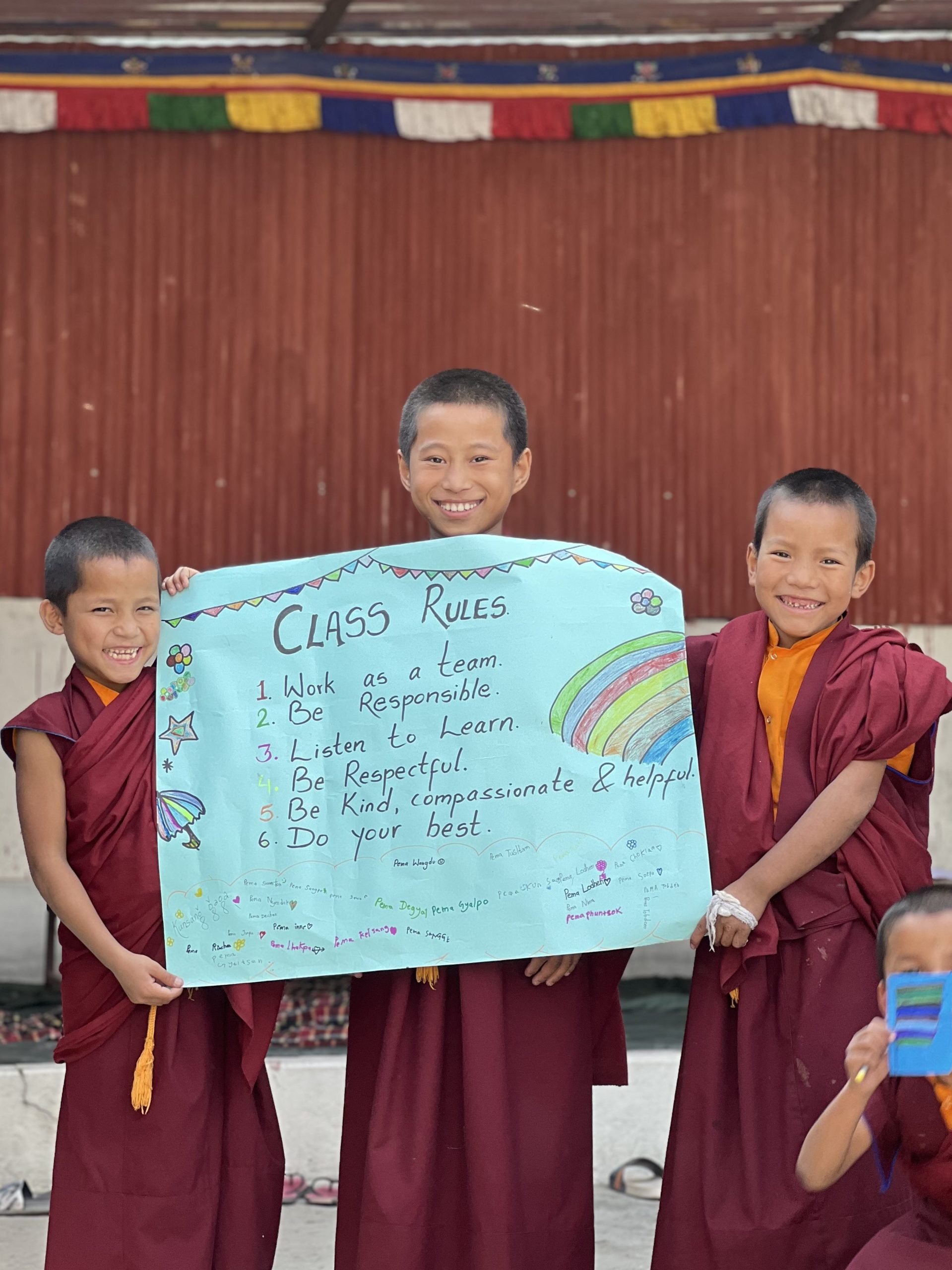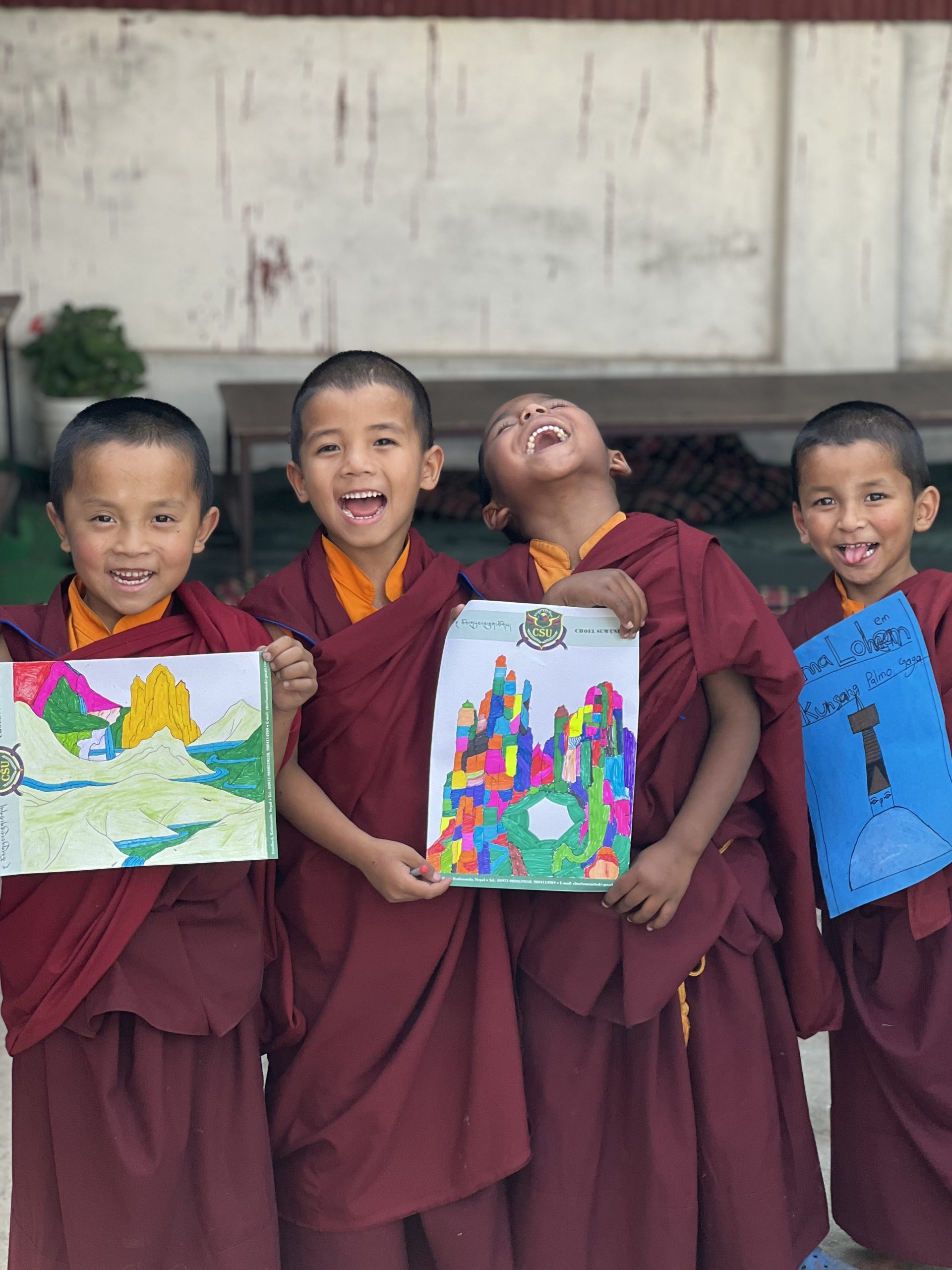 Young monks in the foundation poses contagious smile, a moment captured by their English teacher